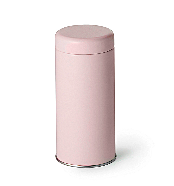 Dose in trendigem Pastellrosa aus Weißblech in mattem Look. Zeitloses, schlichtes Design mit gleichmäßiger Oberflächenveredelung. Dosendeckel mit Aromaschutz.